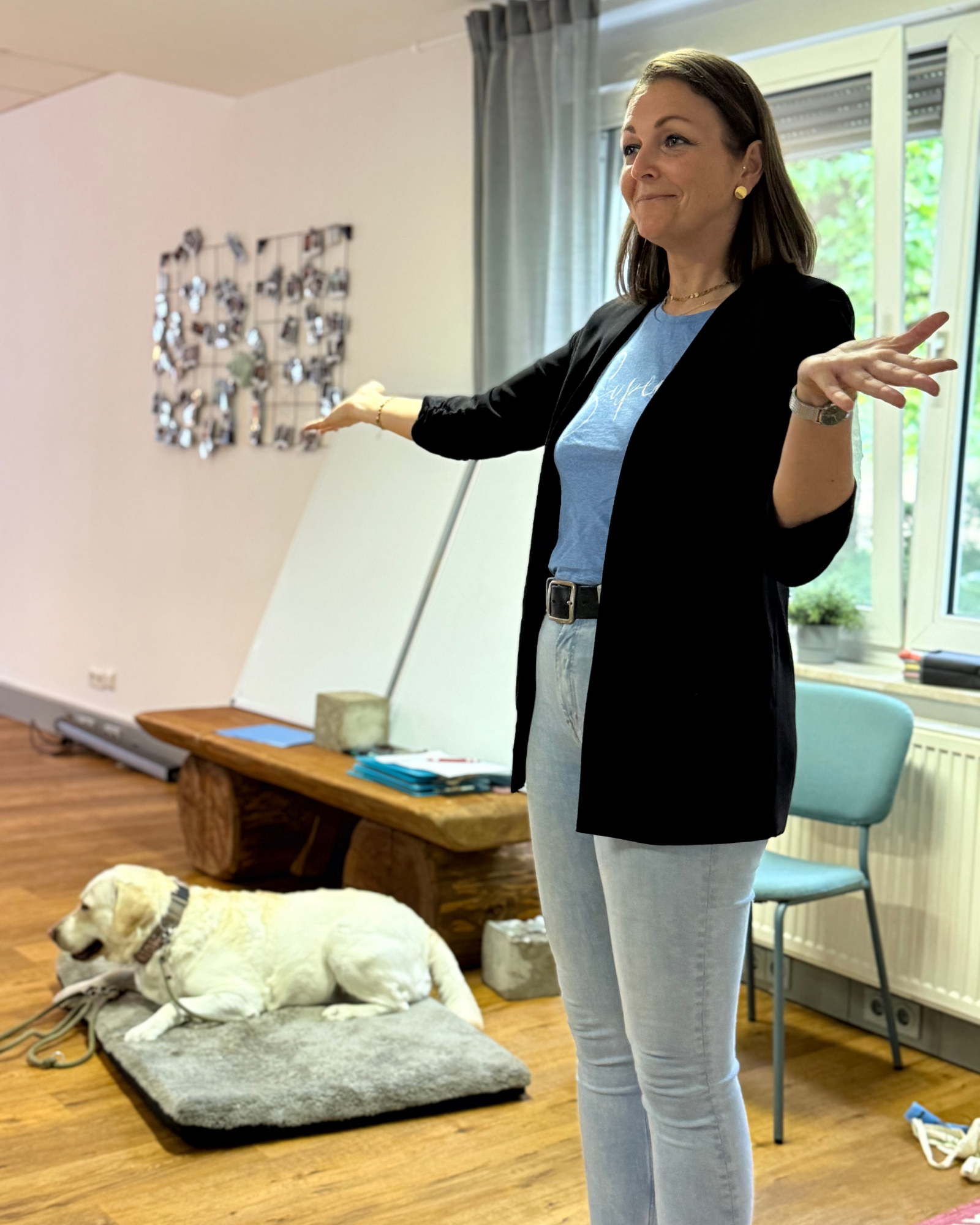 - Durch interaktive Übungen erleben, wie dein Hund auf deine Präsenz, Haltung und Energie reagiert.